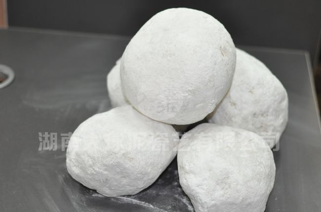 大球泥和小球泥是一對“雙胞胎”,系偉晶巖風(fēng)化的殘余物,礦石名為高嶺土,礦石有大球、小球之別,大球直徑10—40厘米,小球直徑3—4厘米。大小球泥一身潔白,過去長期隱藏在湖南湘西深山老林之中,過著與世隔絕的“地下生活”。