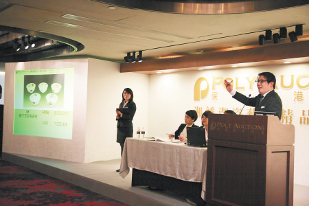 毛澤東生活用瓷首次亮相香港拍賣,并拍出800萬元,成為全場拍賣價格最高的拍品。劉捷萍 攝