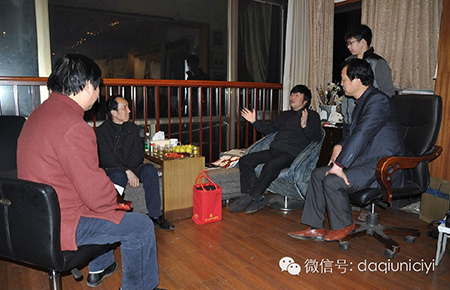 2014年3月14日晚,湖南大球泥瓷藝有限公司董事長滕召華及湖南省工藝美術(shù)大師黃永平一行四人專程前往畫室拜訪了著名旅美畫家李自健先生。