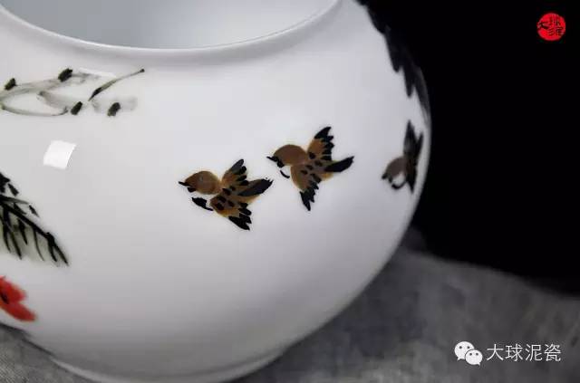 《壯志凌云》小瓷罐,以大球泥為原材料,以釉下五彩為工藝,采用手工拉坯,經(jīng)高溫1400攝氏度中燒制而成,色料充分滲透于坯釉之中,呈現(xiàn)出水潤(rùn)光滑的視覺(jué)效果,清朗不渾,明凈素雅。