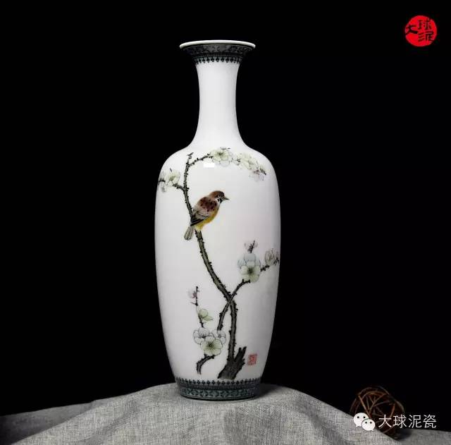 《凌寒飄香》柳葉瓶,以大球泥為原材料,由省級工藝美術(shù)大師黃永平創(chuàng)作。胎體潔白細膩,釉色光滑瑩潤。素雅的畫面質(zhì)感,美感十足。雀鳥枝頭相伴,生動活潑,和諧美好。畫面層次分明清晰,具有較高的觀賞價值。