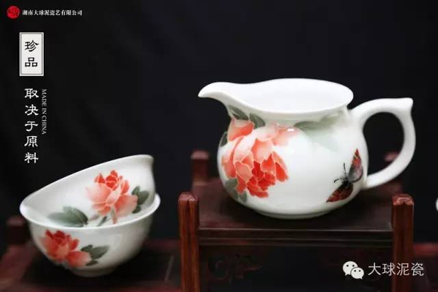 杯身采用釉下五彩工藝裝飾,以象征雍容富貴的牡丹花和蝴蝶入畫,將對生命的感悟,對生活的熱情融于作品之中,表達了人們對至善至美的美好生活的追求,不但有形式之美,更兼具內(nèi)在之美。觀之令人賞心悅目、樂趣無窮。