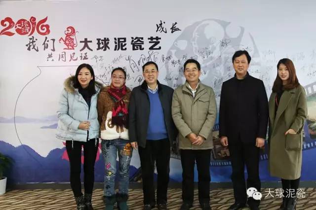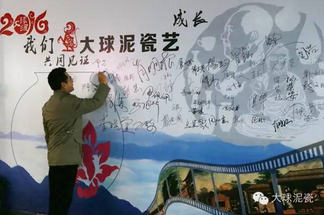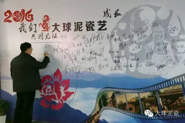 唐主任則表示,大球泥稀缺原料和大球泥高端藝術(shù)瓷是我們國(guó)家的特色文化產(chǎn)業(yè)重點(diǎn)項(xiàng)目。新的一年無(wú)論是從政策上,還是資金上,政府都將加大對(duì)大球泥瓷藝的扶持力度。期望大球泥瓷藝在2016能夠獲得更加輝煌的成績(jī),他笑稱,今日在簽名墻上寫下的名字,將來(lái)便是他見證大球泥瓷藝成長(zhǎng)的歷史證據(jù)!
