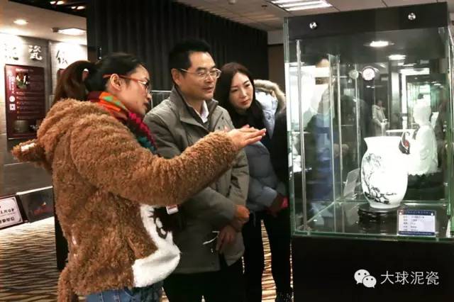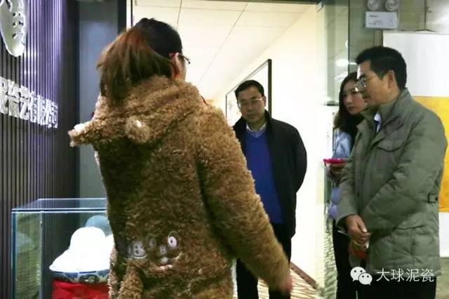 在公司張副總的帶領(lǐng)下,唐主任和劉董首先參觀了大球泥瓷精品展示廳。第一次見到大球泥瓷的劉董瞬間被激發(fā)起了強(qiáng)烈的好奇心,一邊認(rèn)真地觀賞瓷器,一邊仔細(xì)地詢問著關(guān)于大球泥原料的研究開發(fā),大球泥瓷的燒制工藝和公司未來(lái)的發(fā)展規(guī)劃等問題。