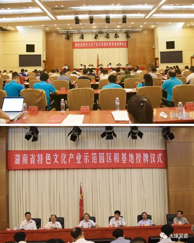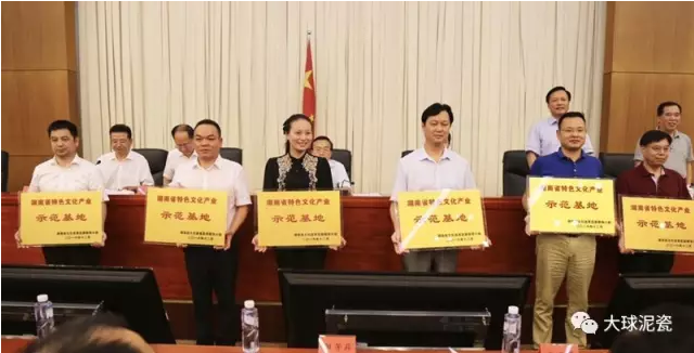 8月2日下午,湖南大球泥瓷藝有限公司在湖南省政府接受“省特色文化產(chǎn)業(yè)示范基地”授牌。湖南省副省長向力力,湖南省政府副秘書長彭翔,湖南省委宣傳部副部長楊金鳶,湖南省文化廳黨組書記、廳長禹新榮、湖南省財政廳黨組成員、副廳長莊大力,湖南省文化廳黨組成員、副廳長肖凌之等領導出席本次授牌儀式。相關廳局負責人以及14個市州宣傳部及文廣新局的相關領導參加了此次授牌儀式。