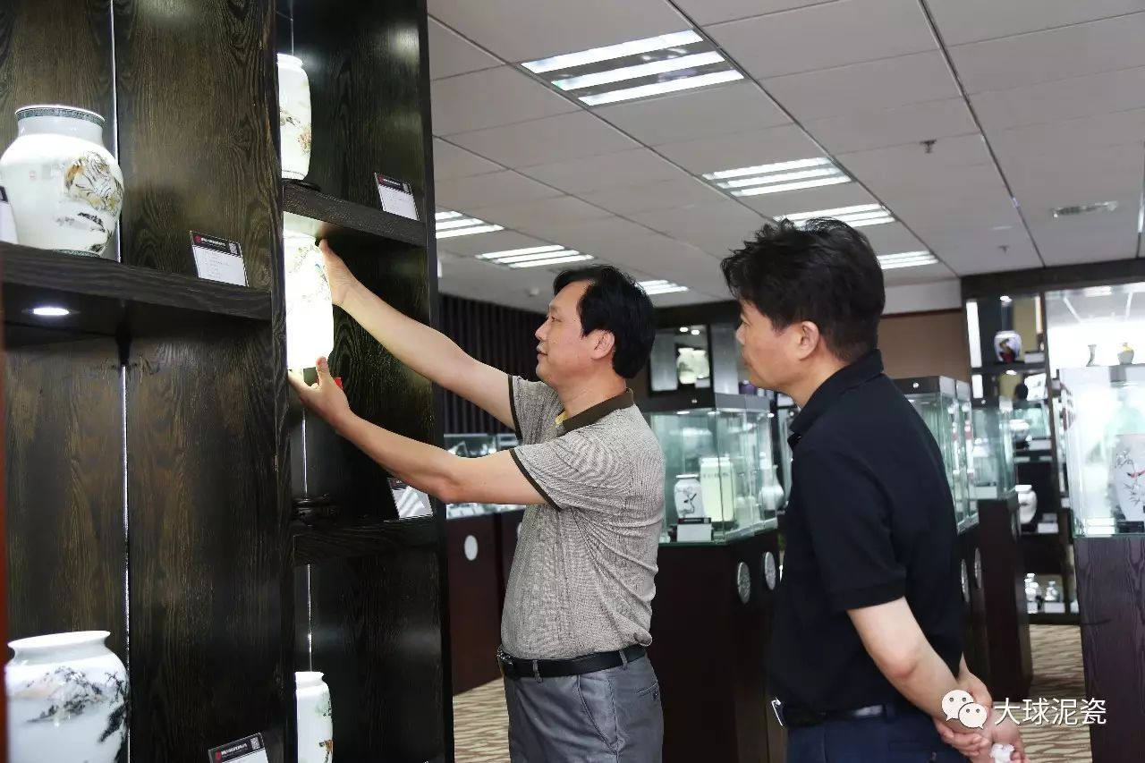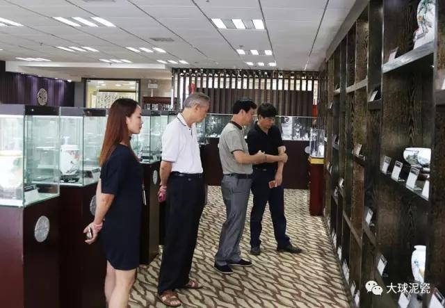 參觀考察后,邱主任認為大球泥瓷極具傳統(tǒng)的湖湘文化特色,又非常符合國家“一帶一路”發(fā)展規(guī)劃,可作為具有地方特色代表性文創(chuàng)作品走出國門,邁向世界。滕董表示大球泥瓷正朝著國際化發(fā)展而努力,今年6月份公司作品已在芬蘭展出,并獲得一致好評。另一原創(chuàng)作品《和平》套具即將在9月份作為聯(lián)合國禮品走向國際。
