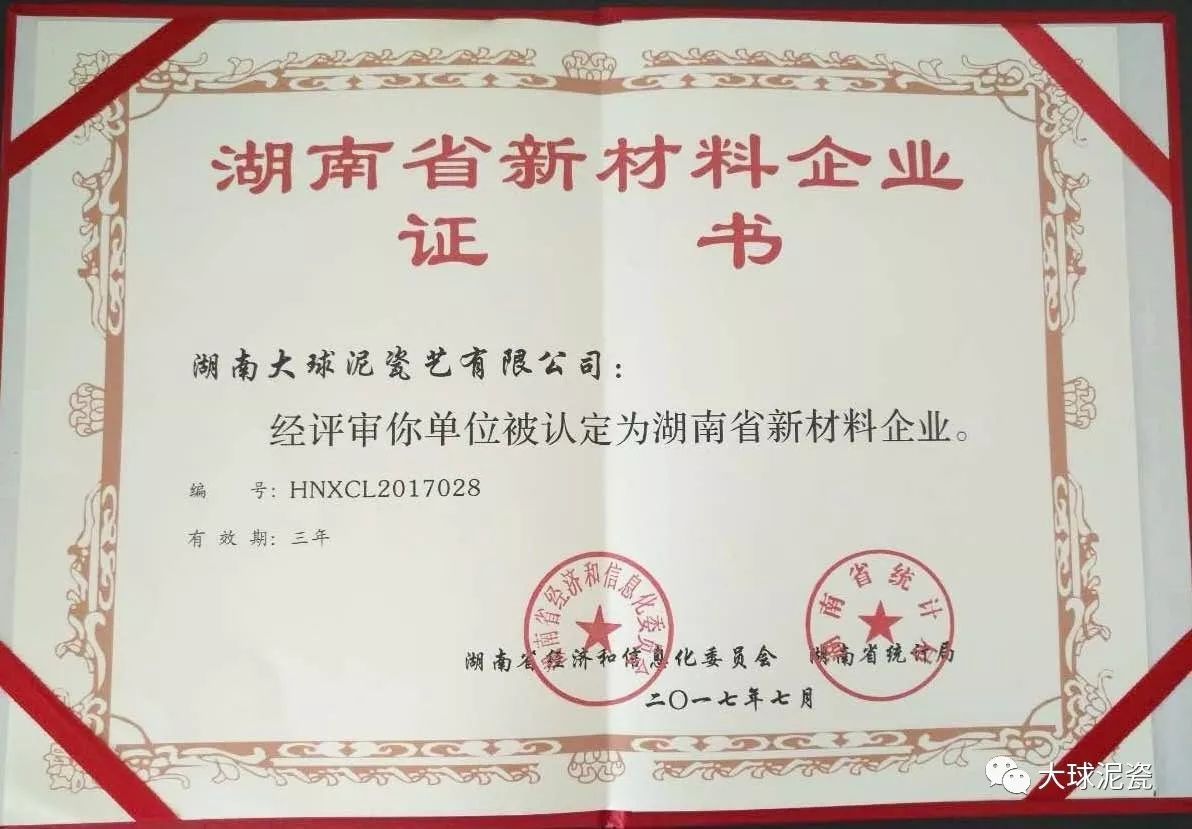 大球泥瓷藝公司的核心競爭力是擁有世界上已枯竭、僅存下來的一批陶瓷原料——大球泥及專有技術(shù)。公司是國家高新技術(shù)企業(yè)、國家特色文化產(chǎn)業(yè)重點項目、省特色文化產(chǎn)業(yè)示范基地,此次榮獲“湖南省新材料企業(yè)”榮譽稱號更是實至名歸。在新材料上研發(fā)、保護等方面取得了顯著的成就,為湖南的藝術(shù)陶瓷發(fā)展,貢獻了自己的一分殷實力量。