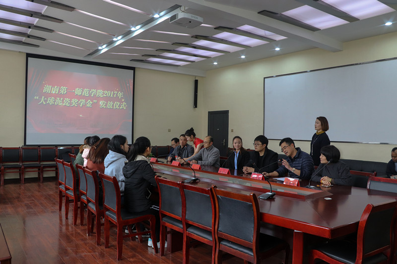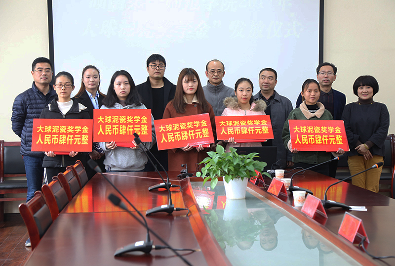 11月28日,大球泥瓷藝受邀參加湖南第一師范學(xué)院2017年“大球泥瓷獎學(xué)金”發(fā)放儀式,常務(wù)副總張萍、副總楊振偉出席了此次活動。
