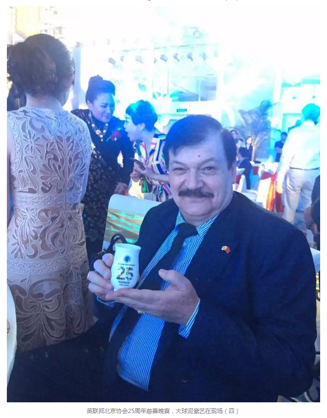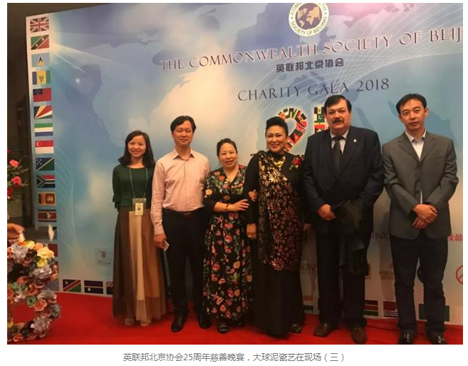 6月9日晚,英聯(lián)邦北京協(xié)會25周年慈善晚宴在中國大飯店舉行。英聯(lián)邦成員國駐華大使及夫人、國際友人及愛心企業(yè)共600余人參加,大球泥瓷藝董事長滕召華受邀出席。