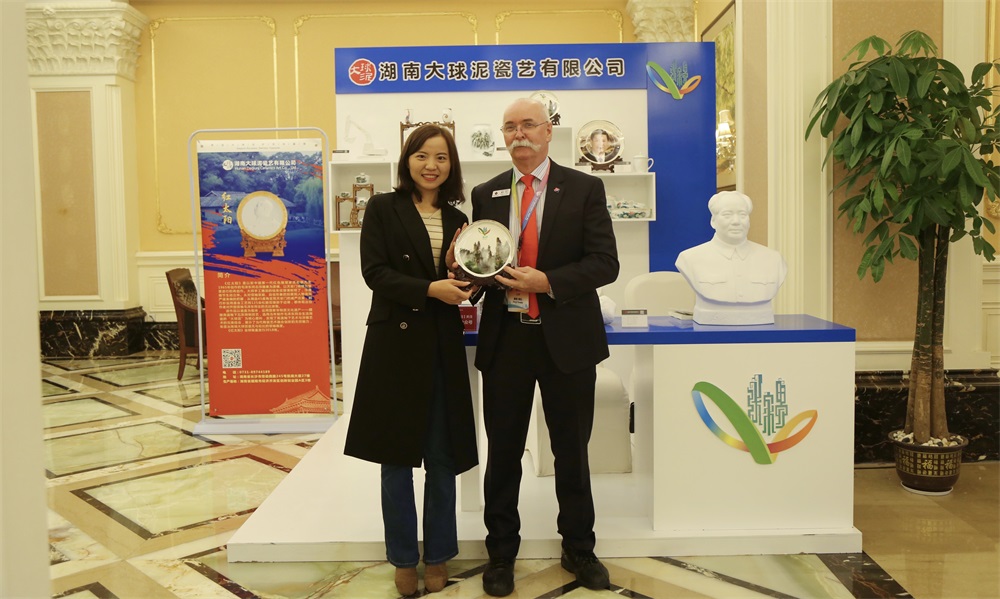 湖南大球泥瓷藝設計制作的《瀟湘瓷路》瓷盤,作為本次活動指定的特別禮品贈送給各國重要參會嘉賓。