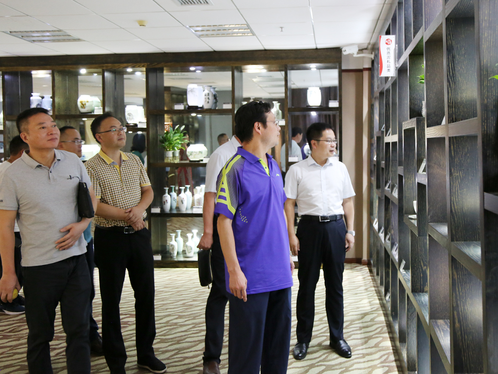 評審會議休息期間,鶴城區(qū)考評小組的成員們還到大球泥瓷藝的文化展示廳和產(chǎn)品展示廳參觀指導(dǎo)。