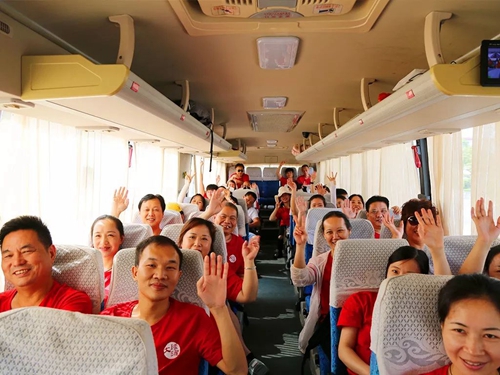 在一個(gè)多小時(shí)并不漫長車程里,同事們爭先恐后地表演歌唱節(jié)目,經(jīng)典笑話,勵(lì)志故事,車輪滾滾,歡笑不斷,熱鬧非凡,灑下了一路甜蜜……