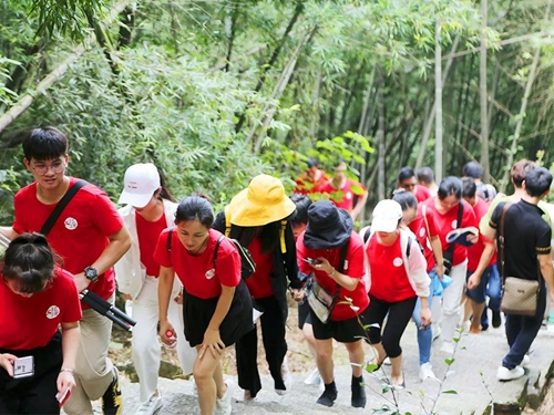 到達(dá)目的地,一句“登頂開始”,大伙拋卻了藝術(shù)的身段,甩開了膀子,唯恐落后于人。在登山過程中,越走腳步越沉,越登視野越高,炎熱天氣,暢快淋漓。人說登山如人生,在經(jīng)受毅力和耐力的考驗(yàn),在經(jīng)歷困難和險(xiǎn)境之后,登高望遠(yuǎn),隨口吟出——江山如此多嬌!