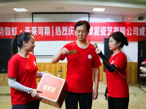 最后的合唱環(huán)節(jié),大家齊唱司歌“遇見大球泥”。優(yōu)美的旋律,精煉的歌詞,凝聚了大球泥瓷藝人的創(chuàng)業(yè)精神,濃縮了大球泥瓷藝的工藝智慧,大家都深深沉浸在唱響美好未來的氛圍中,合唱結(jié)束,都難以自拔。