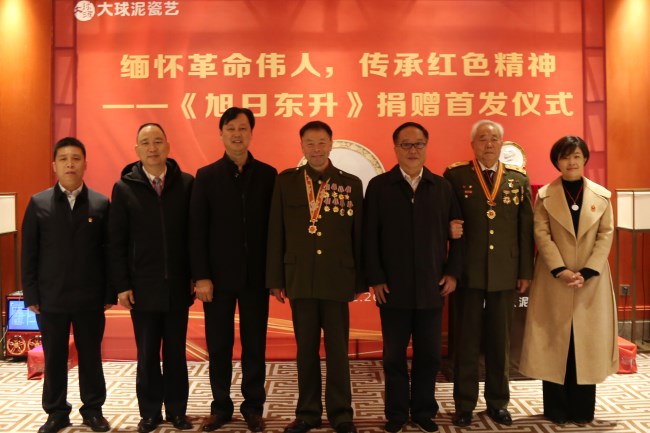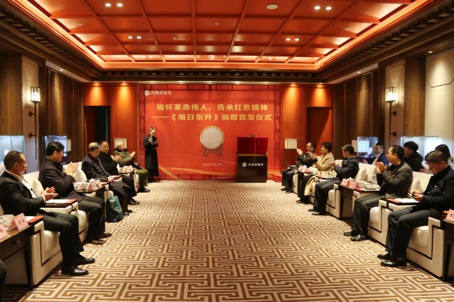 本次活動(dòng)由湖南大球泥瓷藝有限公司與韶山旅游發(fā)展集團(tuán)共同主辦,由大球泥瓷藝營(yíng)銷總監(jiān)姚衛(wèi)主持。滕召華董事長(zhǎng)首先說(shuō),在偉人誕辰紀(jì)念日捐贈(zèng)《旭日東升》意義非凡,公司成立七年,一直在講好中國(guó)故事、傳播紅色文化。這款《旭日東升》以已故著名雕塑家張松鶴創(chuàng)作的毛澤東主席浮雕為原模、以毛澤東故居為背景再創(chuàng)作,全球限量發(fā)售2019枚。隨后,滕董事長(zhǎng)鄭重地將編號(hào)為0001的《旭日東升》作品呈遞給韶旅集團(tuán)李飾峰老總手中。李總發(fā)言表示感謝,他說(shuō)大球泥瓷藝公司很有大愛,這幾年一直堅(jiān)持捐贈(zèng),一直在用藝術(shù)作品弘揚(yáng)偉人精神、傳播紅色文化。
