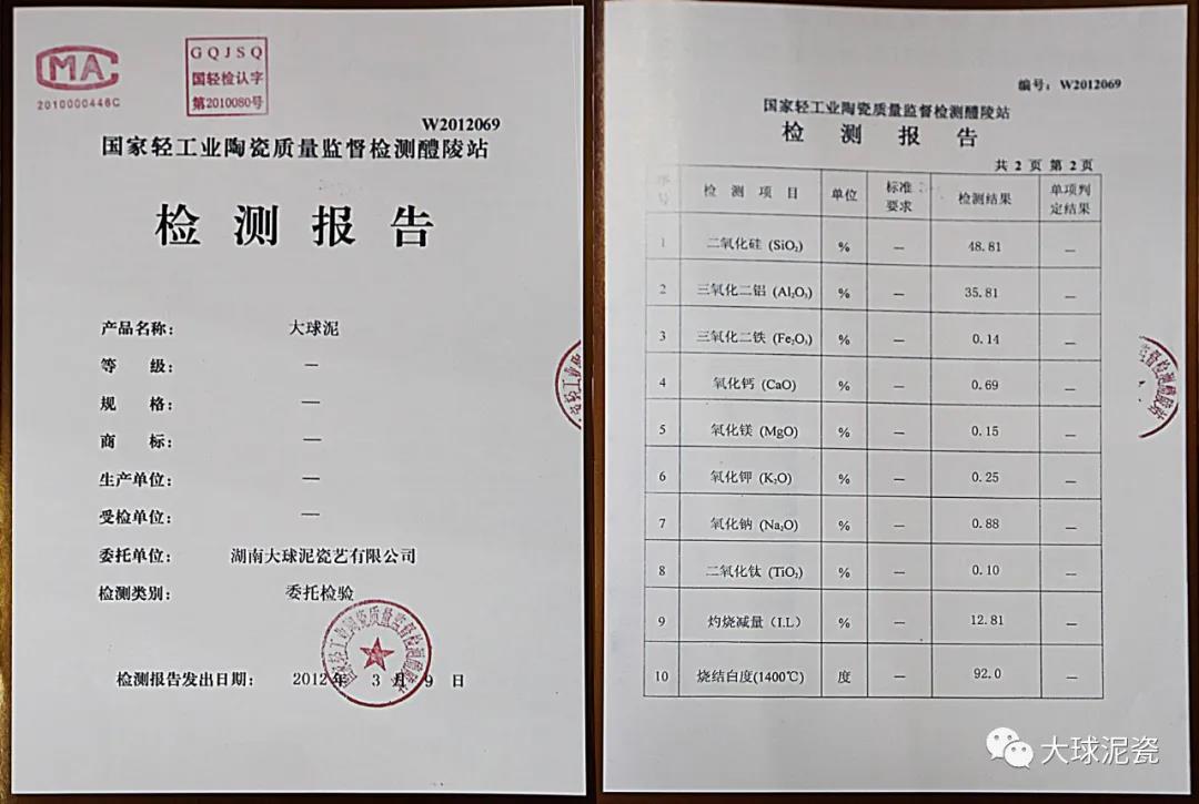 “大球泥”一詞最早出現(xiàn)在公眾是2012年1月,2012年3月9日國家輕工業(yè)陶瓷質(zhì)量檢測醴陵站的檢測報(bào)告,2012年10月22日百度百科的引用詞條,除此之外,沒有更早的媒體報(bào)道有關(guān)“大球泥”了。縱觀所有資料來看,“大球泥”有三個(gè)注解。