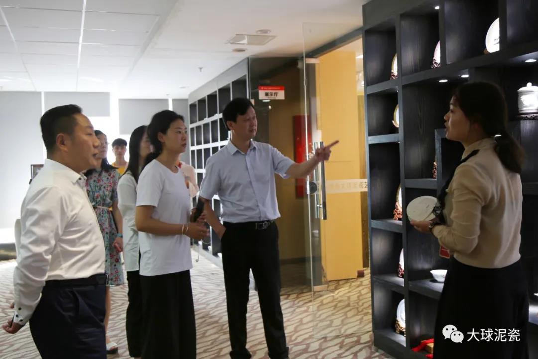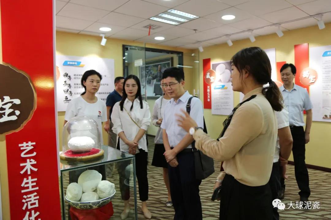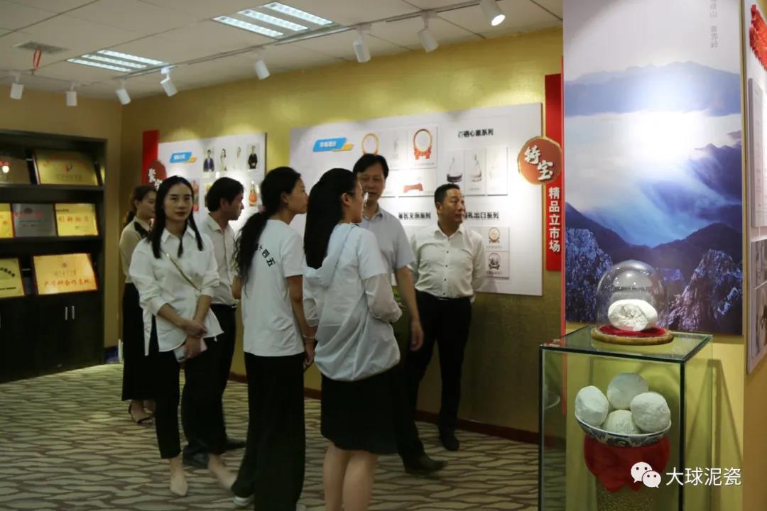 調(diào)研組一行首先參觀了公司精品展示廳,副總經(jīng)理姚衛(wèi)作專業(yè)講解。大家親眼目睹這種被業(yè)內(nèi)稱為“泥黃金”的雪白球狀,就是當(dāng)年承造“毛瓷”的神奇原料時(shí),深深為滕總的遠(yuǎn)見卓識(shí)所折服。看到琳瑯滿目的高端藝術(shù)瓷,或駐足欣賞,或手機(jī)拍照,或在燈光下進(jìn)行比較,親身感受大球泥瓷與眾不同的“白、潤、透”藝術(shù)效果。在姚總的引導(dǎo)下,調(diào)研組成員仔細(xì)欣賞每個(gè)作品,了解其蘊(yùn)含的獨(dú)特匠心故事及文化底蘊(yùn),感受陶瓷文化的獨(dú)特魅力!按笄蚰,人間璞玉”,王鵬先生四年前就送了一句出彩的廣告詞。