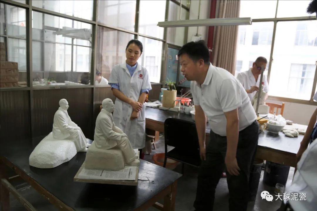 9月4日下午,劉少奇故里管理局局長聶勇,局長助理、辦公室主任龍文陽,文保編研部部長劉新慶等一行到大球泥瓷藝醴陵工廠調(diào)研,并就定制的《劉少奇主席》陶瓷雕塑像進(jìn)行交流。