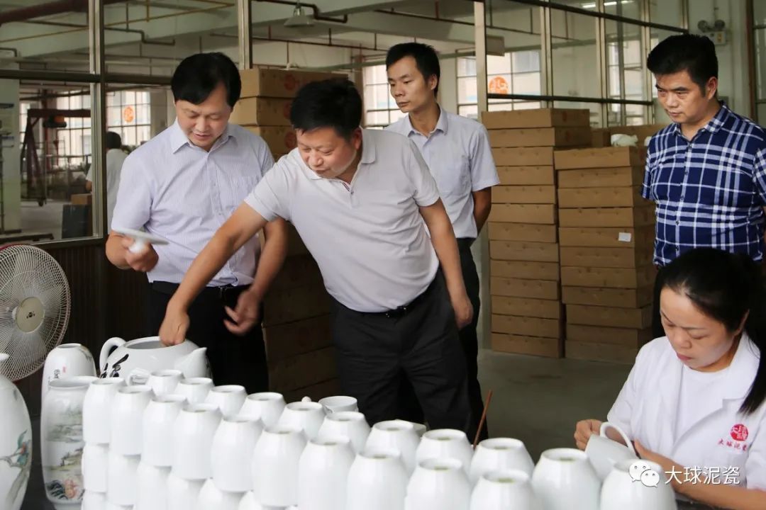 總公司董事長滕召華、副總經(jīng)理姚衛(wèi)陪同參觀了生產(chǎn)車間。從彩繪創(chuàng)作室到雕刻工作室,從配方練泥區(qū)到制模成型區(qū),從拉坯修型崗到洗水噴釉崗,從裝窯燒窯位到檢瓷入庫位,聶局一行認(rèn)真觀瞻陶瓷制作的各道工序,仔細(xì)聽取每個工匠講解的技術(shù)要領(lǐng),收獲頗豐。