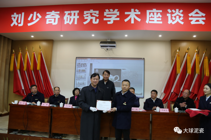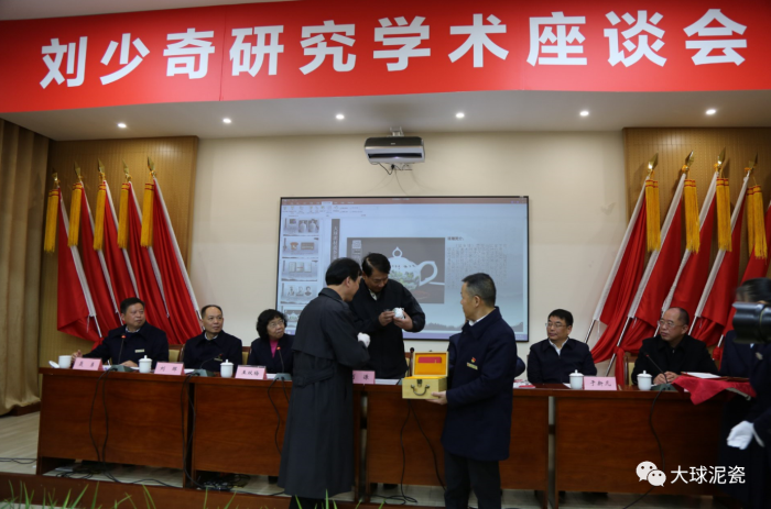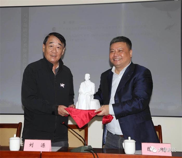 隨后,進(jìn)行“劉少奇研究學(xué)術(shù)座談會(huì)”和文物資料藝術(shù)品捐贈(zèng)活動(dòng)。劉暉書(shū)記致辭,劉源將軍作了重要講話(huà),來(lái)自全國(guó)各地的學(xué)者代表發(fā)言交流。在藝術(shù)品捐贈(zèng)活動(dòng)中,由大球泥瓷藝承造、劉少奇故里管理局定制的《劉少奇同志》瓷塑像由陳剛部長(zhǎng)敬贈(zèng)給了劉源將軍。劉源將軍接受作品后仔細(xì)端詳,被眼前潔白陶瓷塑像的還原度和精美度所震撼,并特別強(qiáng)調(diào):“我一定會(huì)把瓷像擺放到我的辦公桌上”。