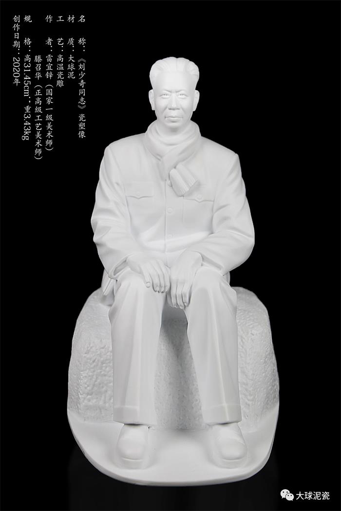 《劉少奇同志》瓷塑像是以湖南省美協(xié)副主席、國(guó)家一級(jí)美術(shù)師雷宜鋅創(chuàng)作的劉少奇同志雕塑像為原模,由湖南省陶瓷工藝大師、國(guó)家正高級(jí)工藝美術(shù)師滕召華創(chuàng)意設(shè)計(jì),并對(duì)陶瓷工藝改進(jìn),創(chuàng)新燒制方法而成型。