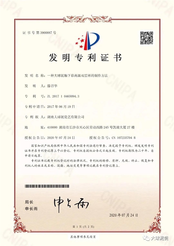 公司作為我國(guó)高端藝術(shù)陶瓷引領(lǐng)者,在陶瓷材料研發(fā)、工藝技術(shù)改革、作品融合創(chuàng)新、制訂行業(yè)標(biāo)準(zhǔn)等方面一直在努力,也非常注重知識(shí)產(chǎn)權(quán)的維護(hù),營(yíng)造行業(yè)良好的市場(chǎng)環(huán)境。2020年醴陵某藝術(shù)瓷公司被判賠我公司25萬余元,另外一家陶瓷公司的侵權(quán)行為公司正在維權(quán)。