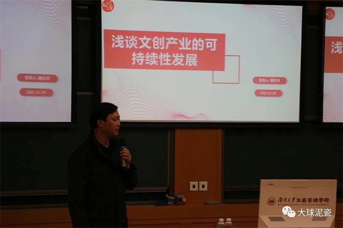 1月9日,湖南大學(xué)工商管理學(xué)院主辦“新商科背景下MBA文創(chuàng)產(chǎn)業(yè)人才培養(yǎng)高峰論壇”,公司董事長(zhǎng)滕召華應(yīng)邀參會(huì),并發(fā)表了《文創(chuàng)產(chǎn)業(yè)的可持續(xù)性發(fā)展》主題演講。