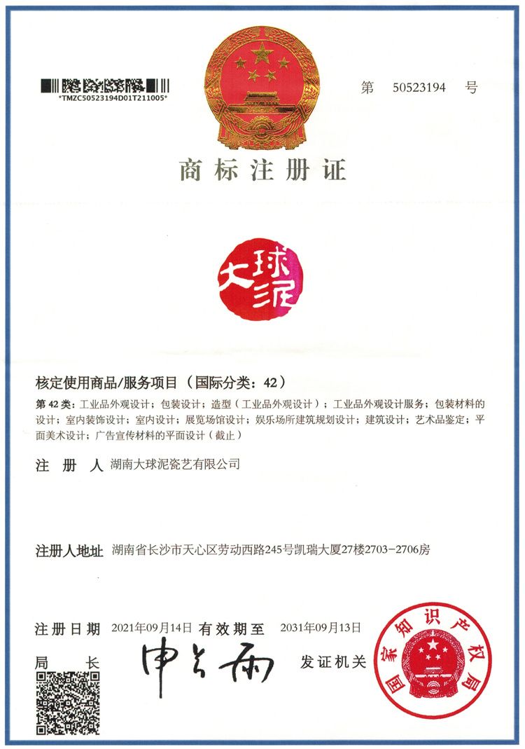 近期,我公司收到國(guó)家知識(shí)產(chǎn)權(quán)局頒發(fā)的“大球泥”在國(guó)際分類42類商標(biāo)注冊(cè)證書,這一注冊(cè)商標(biāo)的啟用,標(biāo)志著“大球泥”商標(biāo)不僅在陶瓷器具、廣告宣傳等領(lǐng)域受到保護(hù),而且在建筑施工、工業(yè)設(shè)計(jì)等領(lǐng)域也受到保護(hù)。