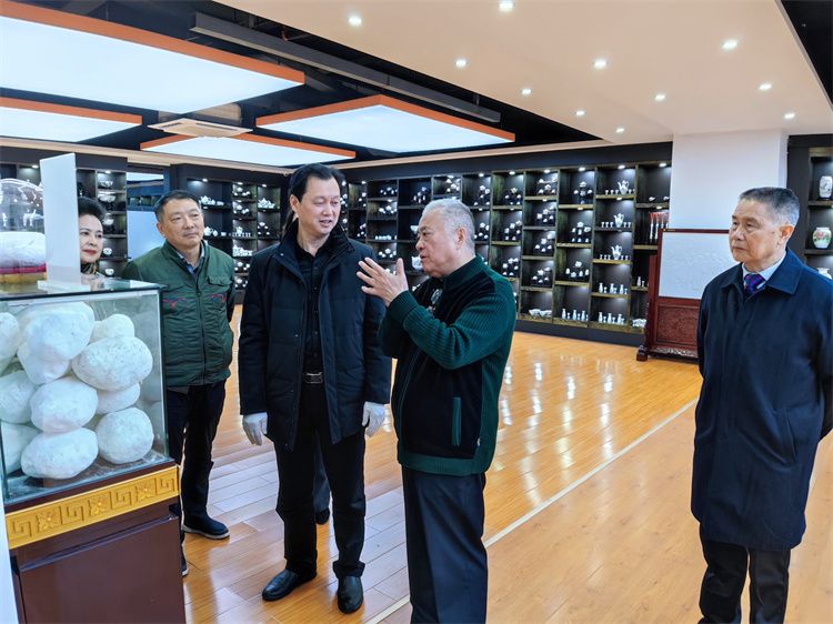 3月25日,中國外交學(xué)院原黨委書記、中國駐蘇里南共和國大使館原大使袁南生到訪大球泥瓷藝,省委宣傳部原外宣辦副主任、省國際文化交流中心主任蘇璇,省機(jī)關(guān)事務(wù)管理局原巡視員宋軍,省委黨校圖書館原館長汪太理,長沙大紅陶瓷總經(jīng)理尹彥征,大公網(wǎng)湖南頻道總編輯李林等陪同考察。